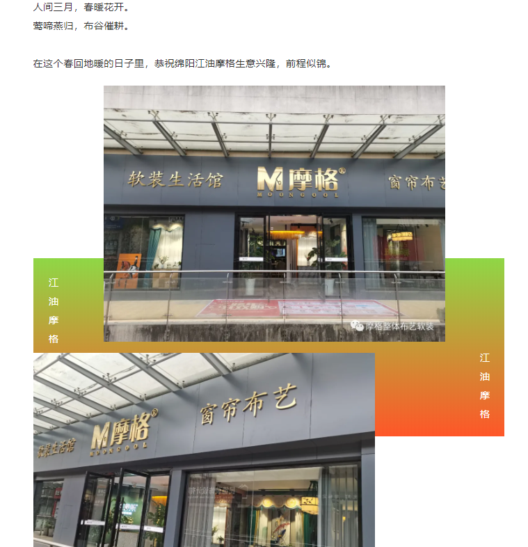 《羞羞视频在线免费观看窗簾軟裝®喜訊》人間三月,春暖花開。恭祝綿陽江油羞羞视频在线免费观看生意興隆,前程似錦。