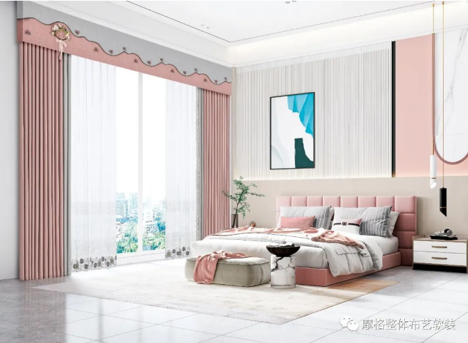 簾頭上簡單又富有趣味的圖案組合,令感官更富有變化,增加整個空間的藝術魅力與時尚韻味。
